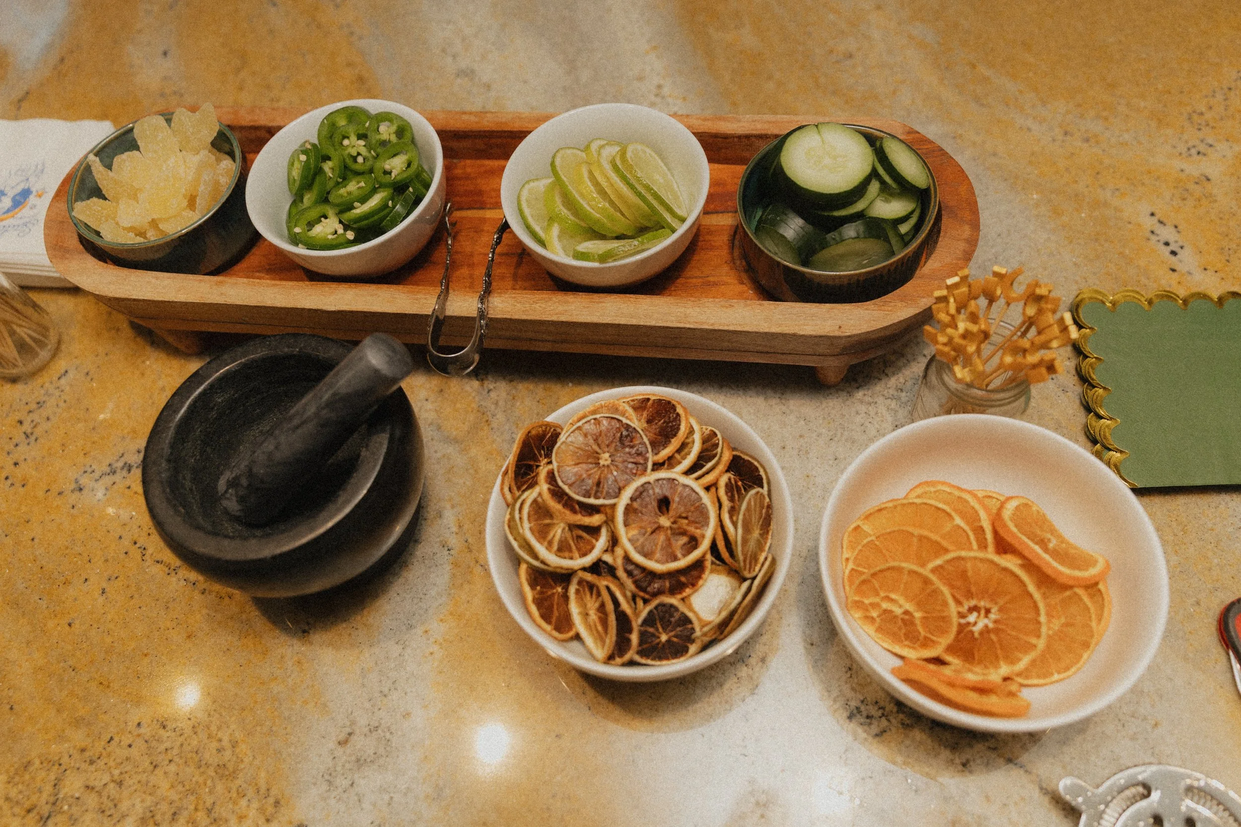 Extra garnishes (dried fruits, umbrellas, pickles, whatever you want!) - inquire for pricing